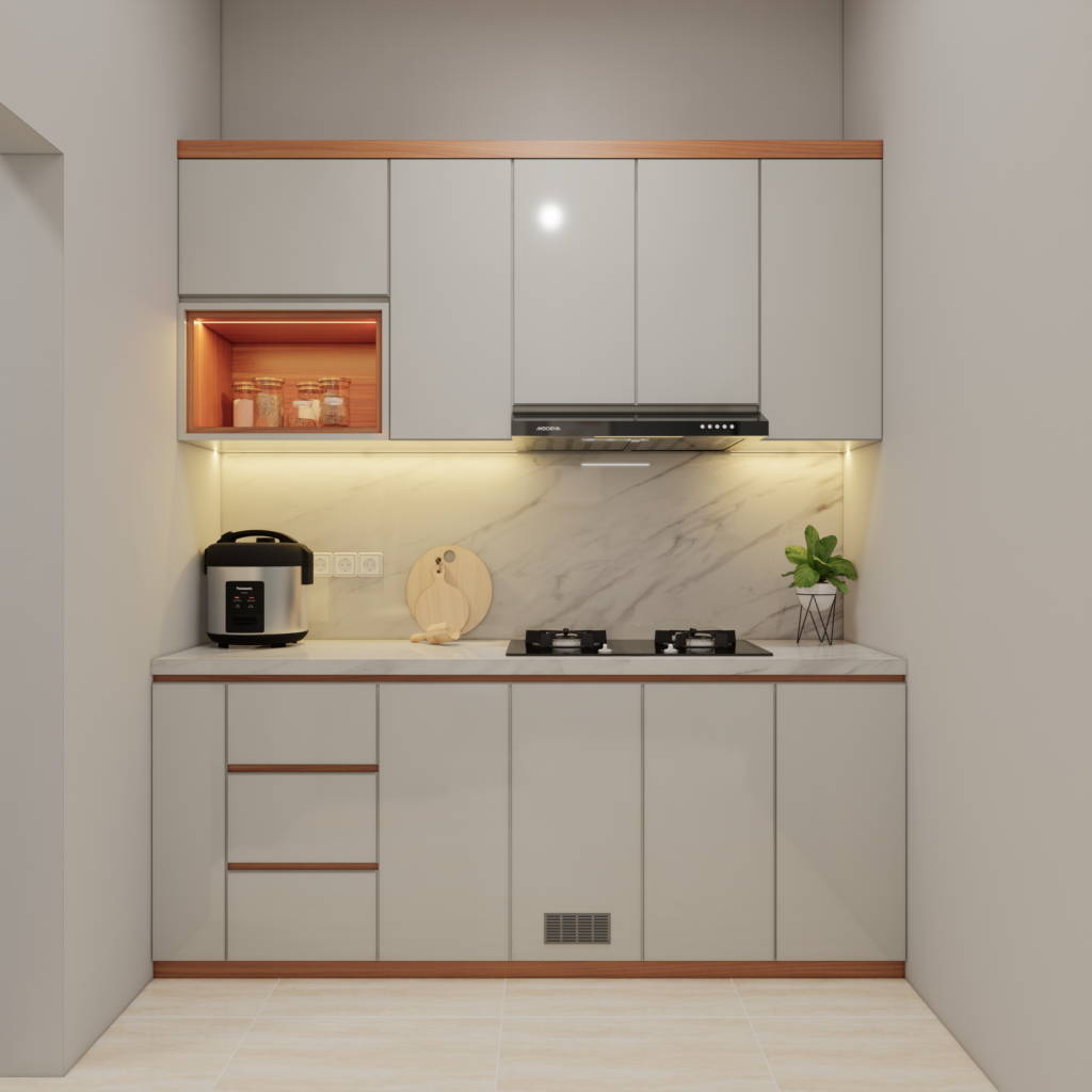 Tampilan Modern dan Rapi: Kitchen set menghadirkan tampilan yang kohesif, bersih, dan modern. Anda bisa memilih desain dan finishing (misalnya, minimalis, klasik, industrial) yang sesuai dengan gaya interior rumah Anda.